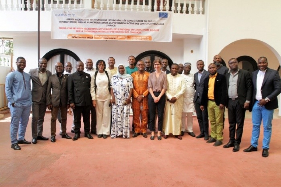 Cet atelier organisé dans le cadre du projet « Implication des Médias Numériques pour une Prévention Active des Conflits et des Tensions » (IMPACT) mis en œuvre en Guinée et en Côte d’Ivoire réunit en présentiel 26 participants venus de la Guinée, du Sénégal, de la France et de la Côte d’Ivoire.