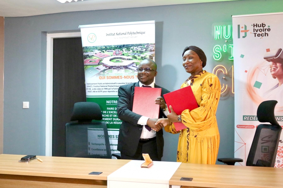 Abidjan, le vendredi 18 juillet 2025(LDA)-Considérant leur volonté partagée de contribuer à l’émergence de projets à fort impact portés par des jeunes chercheurs, ingénieurs et entrepreneurs, l’Institut National Polytechnique Félix Houphouët-Boigny (INP-HB) et Hub Ivoire Tech (HIT) ont signé, le mercredi 16 juillet 2025 à Abidjan-Plateau, un protocole d’entente, d’une durée initiale de 12 mois renouvelable, informe un document à l'attention de la presse.