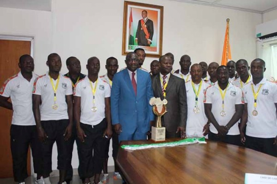 Les Eléphants champions d’Afrique de Maracana ont été honorés par le ministre des Sports et des Loisirs, M. François Albert Amichia. Il a, en effet,  reçu à son cabinet sis à l’immeuble Sogefia à Abidjan-Plateau, le président de la Fédération Ivoirienne de Maracana et Disciplines Associées (FIMADA) et par ailleurs élu nouveau président de la toute nouvelle Fédération Internationale de Maracana Associations (FIMAA) et les Eléphants maracaniers (seniors et vétérans) respectivement sacrés champions et vice-champions d’Afrique  à Lomé pour la 3ème fois consécutive.